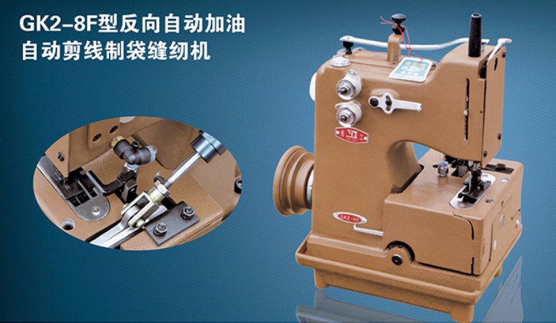 GK2-8F型縫紉機是全自動供油反方向縫口機,用于編織袋自動生產線上實現編織袋的自動縫底、圈邊。